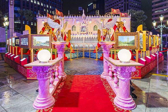 在台北市區,每年都充滿異國情調的**統一時代百貨「愛.Sharing」**今年也沒讓人失望。活動以浪漫水都「威尼斯」為主題城市,為信義區帶來一股華麗神祕的嘉年華氣息。在2樓夢廣場,高達13公尺的聖誕主樹「Purple Wish」隨音樂閃耀,結合威尼斯最具特色的面具節與貢多拉海盜船裝置,讓你在台灣也能體驗一秒出國的浪漫。雪兒秀和光環境展演更讓整個信義區充滿濃濃的耶誕魔力!