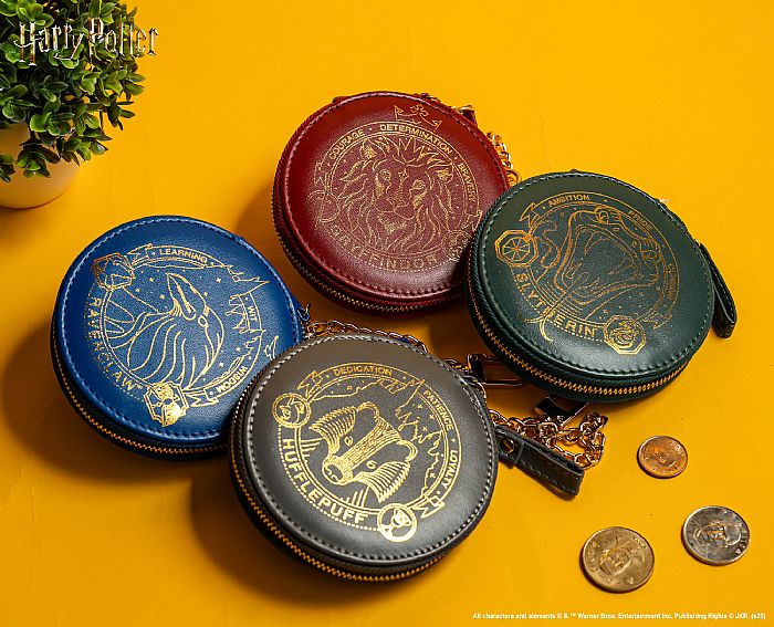 以紅、藍、綠及黑等霍格華茲四學院色為基調的八款「燙金零錢包」,結合燙金徽章設計與皮革質感,粉絲隨身攜帶把零錢收好好,還能掛在包包上當掛飾呢!