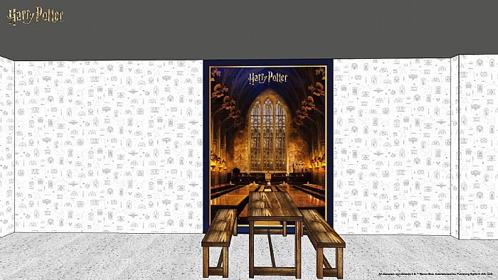 而以霍格華茲大禮堂為背景的「學生餐廳區」,金色燭光與高聳拱頂營造莊嚴氛圍,快來坐在標誌性的木質長桌椅上與電影經典場景合影。六大經典打卡區及場景串聯,讓粉絲們都能拍下一張張令人難忘的精彩照片!