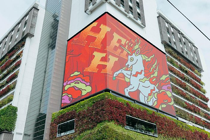 當大眾熟悉的春節傳統走入商場,會產生什麼樣的化學反應?今年春節,勤美 誠品綠園道邀請風格鮮明的藝術團隊「太陽龍宮」跨界合作,以「HEE HA 瘋馬戲」為主題,將傳統春節中常見的錦旗、祈福與許願等日常符碼重新拆解、轉譯,打造一場兼具視覺張力與幽默感的時髦新春慶典,為春節帶來全新的觀看方式與參與體驗。