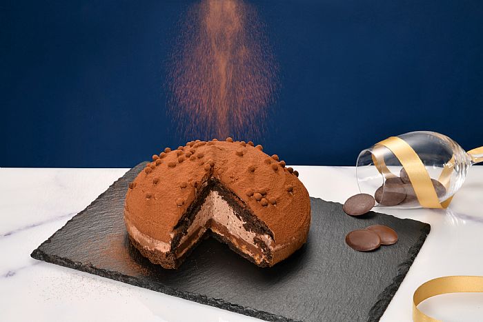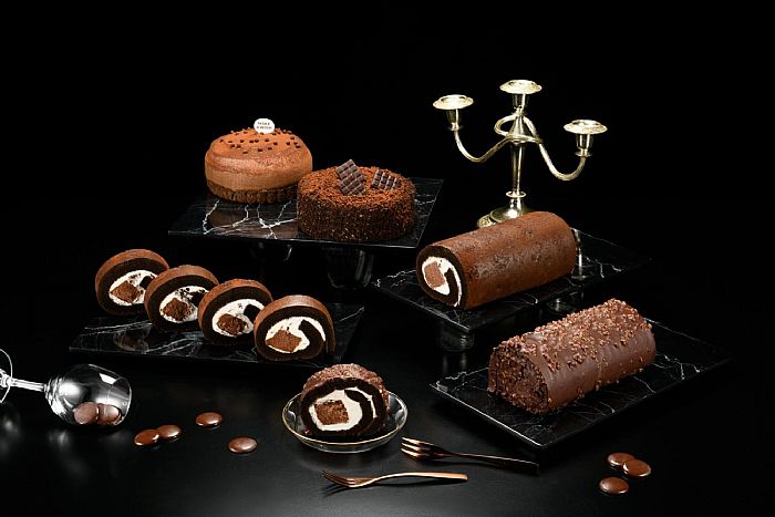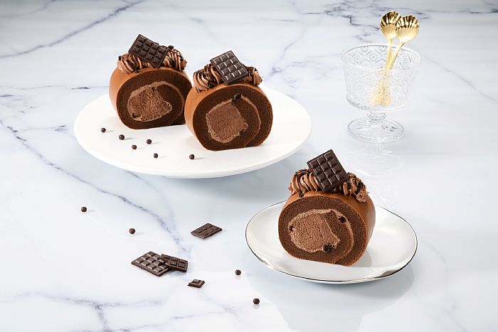 多款系列切片甜點打造餐桌上的黑金派對,滿足獨享、聚會心願;「厄瓜多爾黑炫巧克力生乳捲切片」以特調可可奶霜與厄瓜多爾黑巧克力慕斯,呈現醇厚、濃郁的巧克力生乳捲,再以71%厄瓜多爾黑巧克力片裝飾蛋糕,細細品嚐傳奇的原始風味。