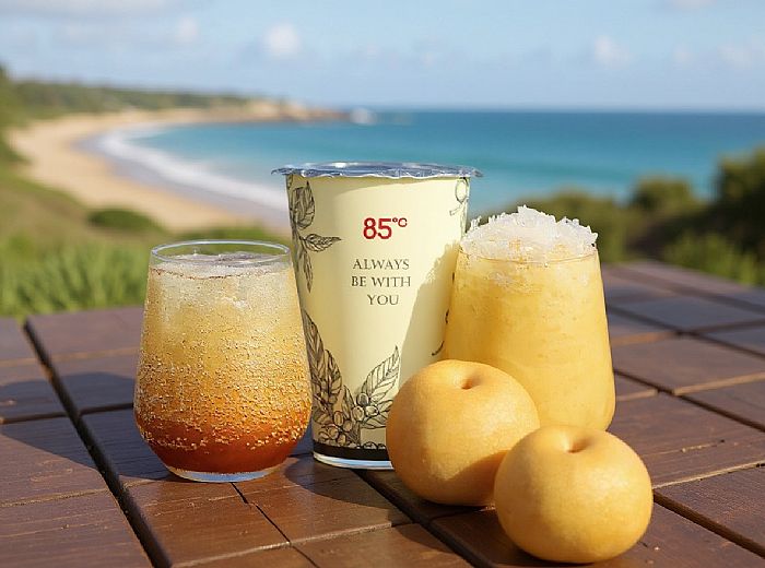 85°C以「自然果香與健康概念」為主題,推出兼具風味與養生的新飲品組合,從果香滿分的水梨氣泡美式,到潤喉養生的水梨銀耳茉莉,以及富含多種維生素被喻為超級食物的羽衣甘藍蔬果飲,不論是愛喝咖啡的上班族、注重保養的女性族群,或是追求清爽健康飲食的消費者,都能在這三款新品中找到最合適的選擇。