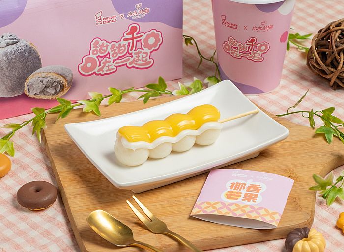 「椰香芒果糰子」以芒果糯米飯為開發概念,將日式糰子做為糯米飯,並於糰子擠上椰奶醬與泰式芒果醬,打造擁有異國風味的日式糰子。
