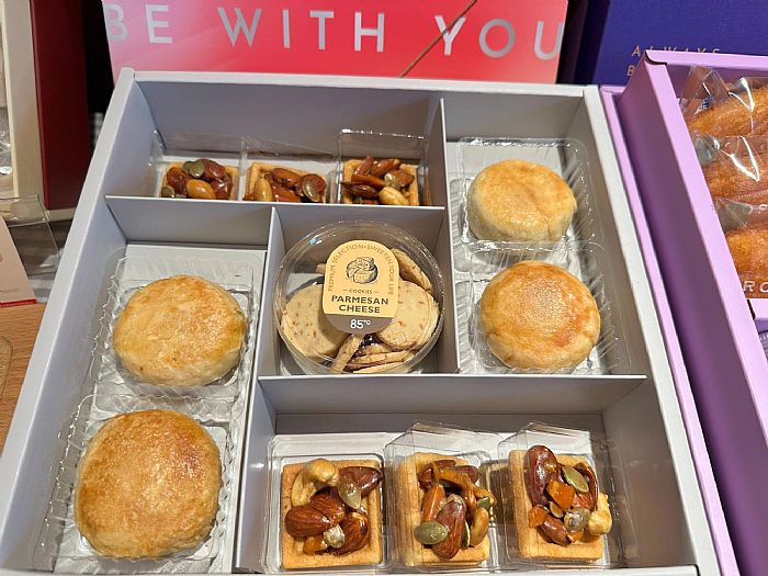 以多樣口感取勝,內含香酥的肉鬆麻糬酥餅、高鐵商務車廂指定點心鹽之花香芒堅果塔,以及口感紮實的帕瑪森餅乾,甜鹹交織、口口驚喜,特別適合全家人一同分享。