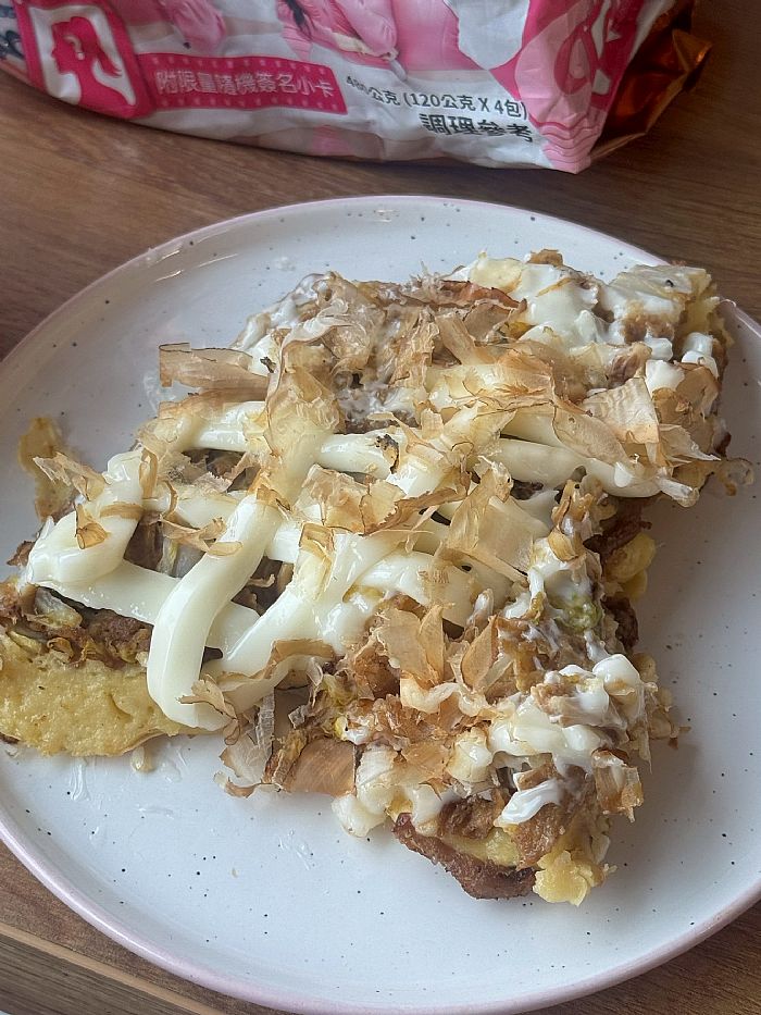 編輯還自己再做了隱藏吃法「三鮮炸醬麵大阪燒」,沒想到炸醬麵做成大阪燒也非常適合,擠上美乃滋和灑上柴魚片後就像真的大阪燒,不管是單吃還是創意吃法都很好吃!