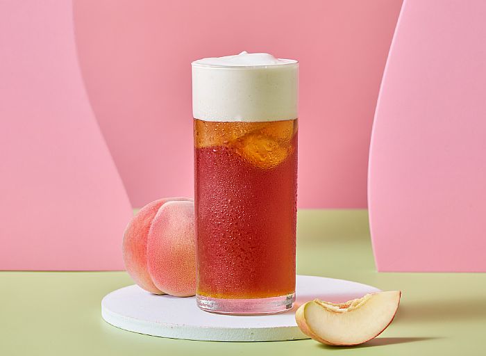 香甜水蜜桃搭配斯里蘭卡紅茶,搭配奶霜鹹甜交錯,有著淡淡的戀愛甜蜜氛圍感!