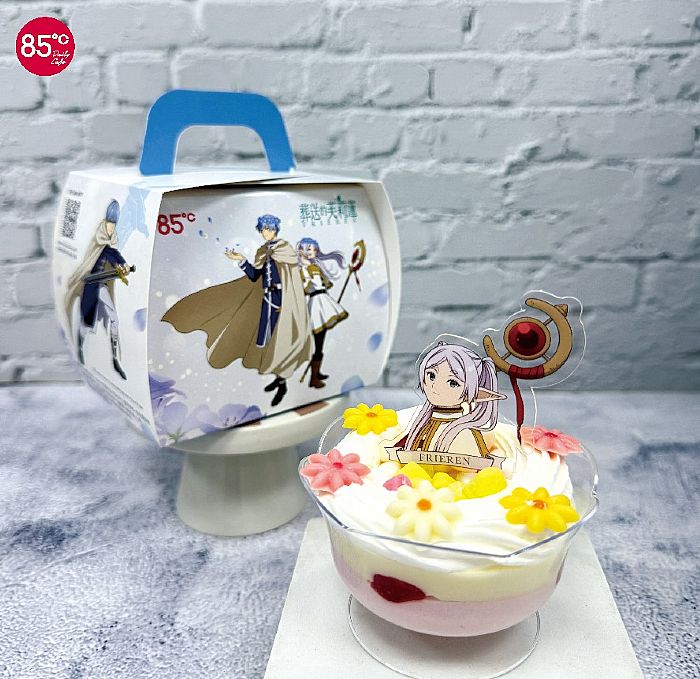 動漫迷準備暴動!85℃攜手人氣動畫《葬送的芙莉蓮》推出公仔蛋糕,4月23日正式開賣,四款蛋糕有「芙莉蓮的回憶旅途」、「費倫的夢幻時光」、「芙莉蓮與寶箱怪」和「變出花田的魔法」,其中兩款造型蛋糕還附有精緻的芙莉蓮、費倫公仔,讓粉絲吃完還能繼續收藏,蛋糕紙盒內的墊高板還可DIY變身為實用又可愛的置物盒,讓粉絲們不只吃蛋糕,還能收藏、美拍兩相宜!全台共限量8萬6千個蛋糕,預估銷售營業額新台幣1千7百萬元,預料將成為近期社群打卡新熱點。