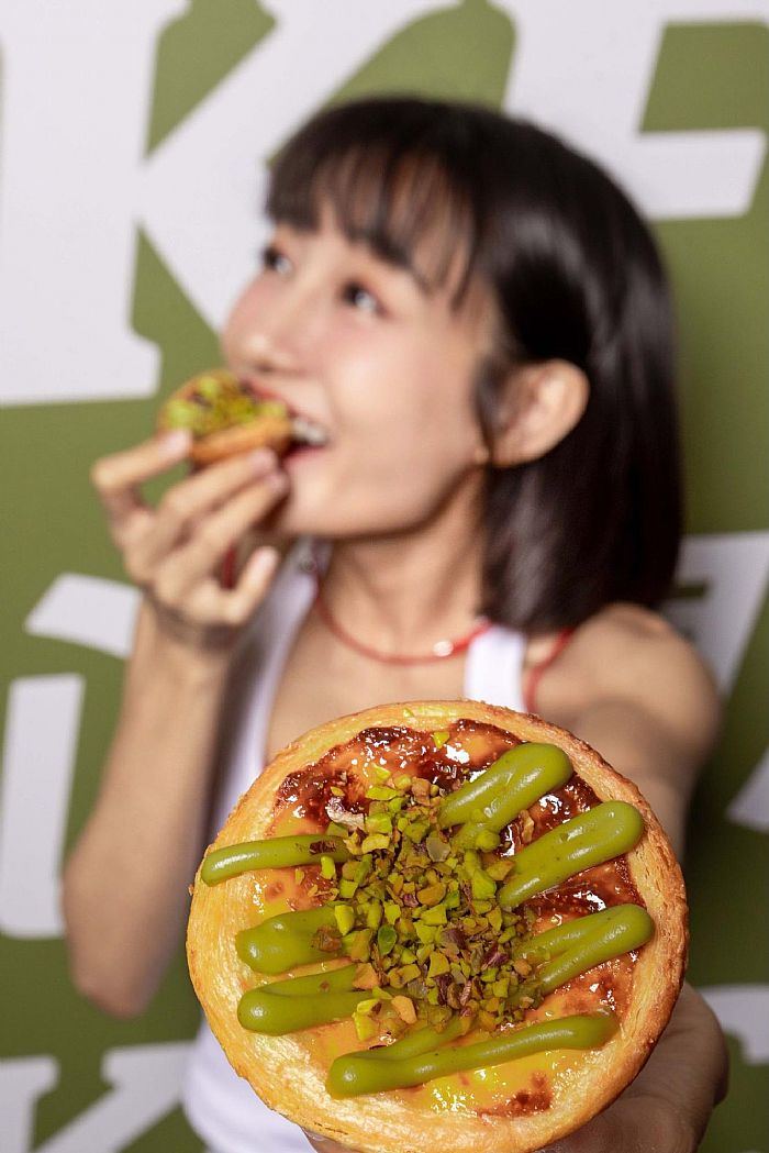 肯德基「開心果脆粒蛋撻」主打極致的層次感,將頂級開心果風味發揮到淋漓盡致,強勢升級為「脆粒、慕斯、流心」的三層爆擊層次,在濃郁香氣與多重口感之間,精準鎖定甜點控挑剔的味蕾,每一口都能吃出精品級的驚喜感。